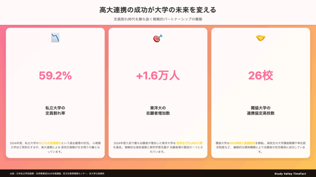A大学の成功事例が示すように、戦略的な高大連携は志願者増に直結するだけでなく、入学者の質の向上、大学教育の活性化など、多面的な効果をもたらします。