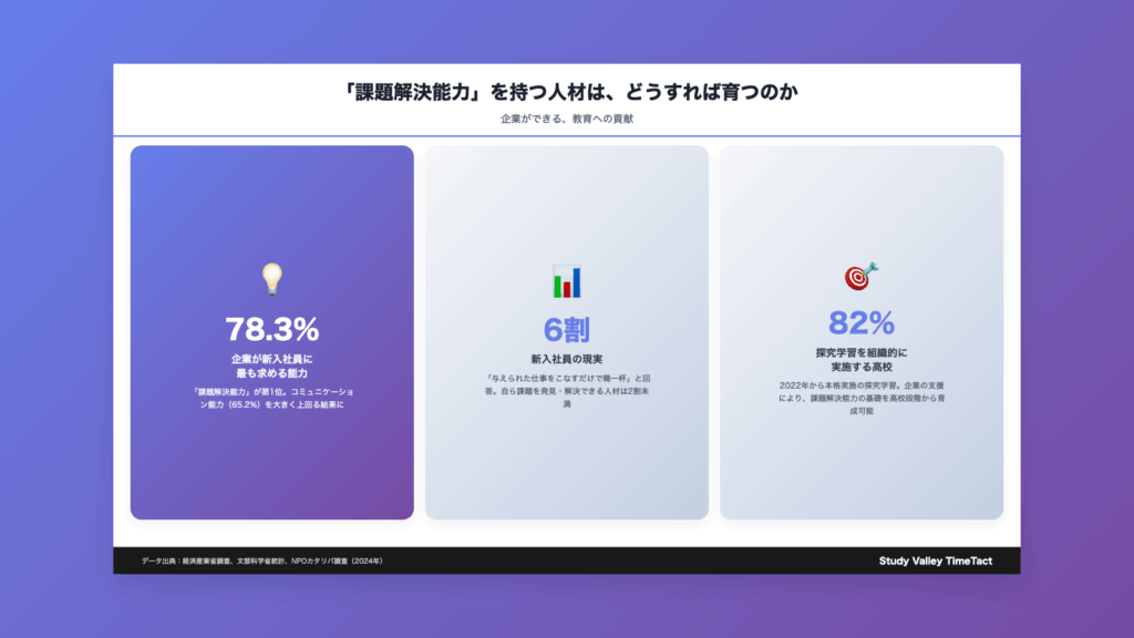 課題解決能力の不足は、個人の資質の問題ではなく、教育システムと企業の人材育成アプローチの構造的な問題に起因しています。