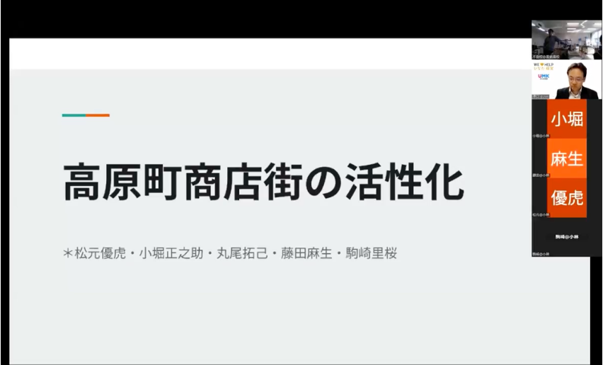 UMKの原口様からは「人口減少は止められないという現実の中で、祭りにテーマを絞って人を呼ぶ取り組みが面白いと思った。」「また、高原町らしいイベントを考えられるともっと活性化につながる。」とフィードバックをいただきました。