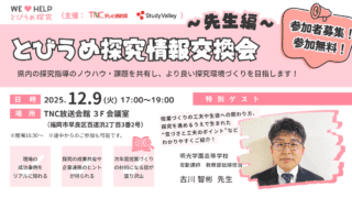探究学習支援のリーディングカンパニーである株式会社Study Valley(本社:東京都江戸川区、代表取締役:田中悠樹)は、全国の中学校・高等学校教職員や教育委員会関係者を対象に、無料オンラインセミナー『探究の“今”を見直し、“これから”を描く:実践とトレンドの接続』を2025年12月19日(金)に開催いたします。